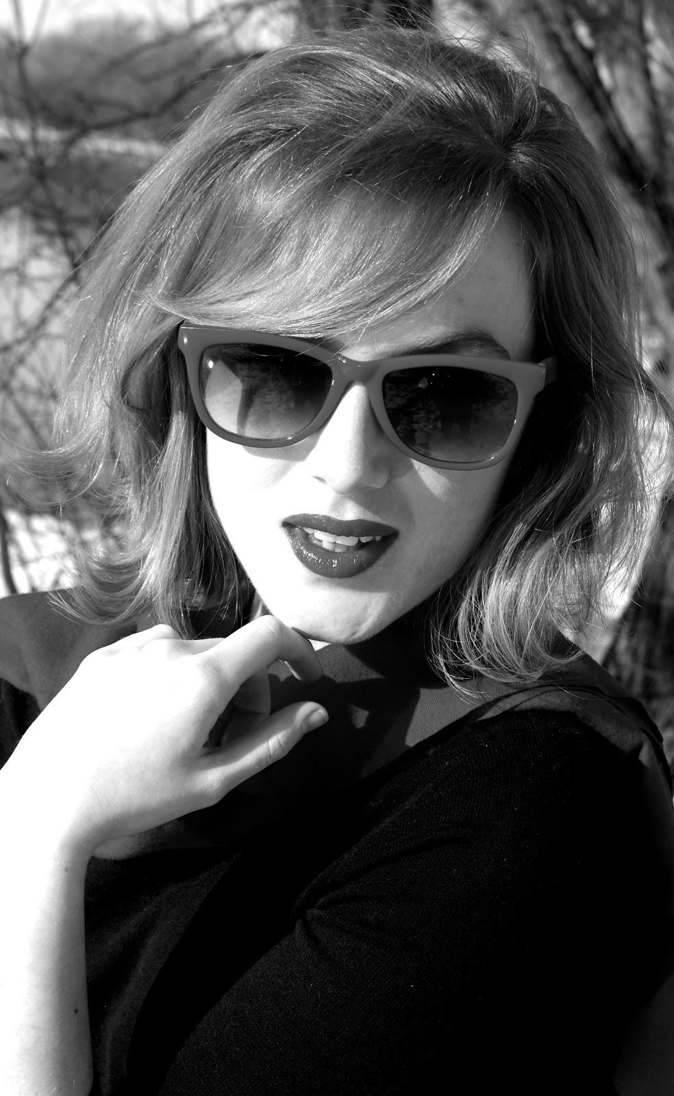{Jumper: Gap; Trousers: A&F; Black Sunglasses: Forever 21; Red Sunglasses: New Look; Purple Scarf c/o of my Grandma; Red Scarf and Leather Jacket c/o my sister; Navy Coat: Miss Selfridge; Pearl Necklace and Black Ballet Flats: Joe Fresh; Leopard Print Heels: ASOS; Purse: Chapters.}